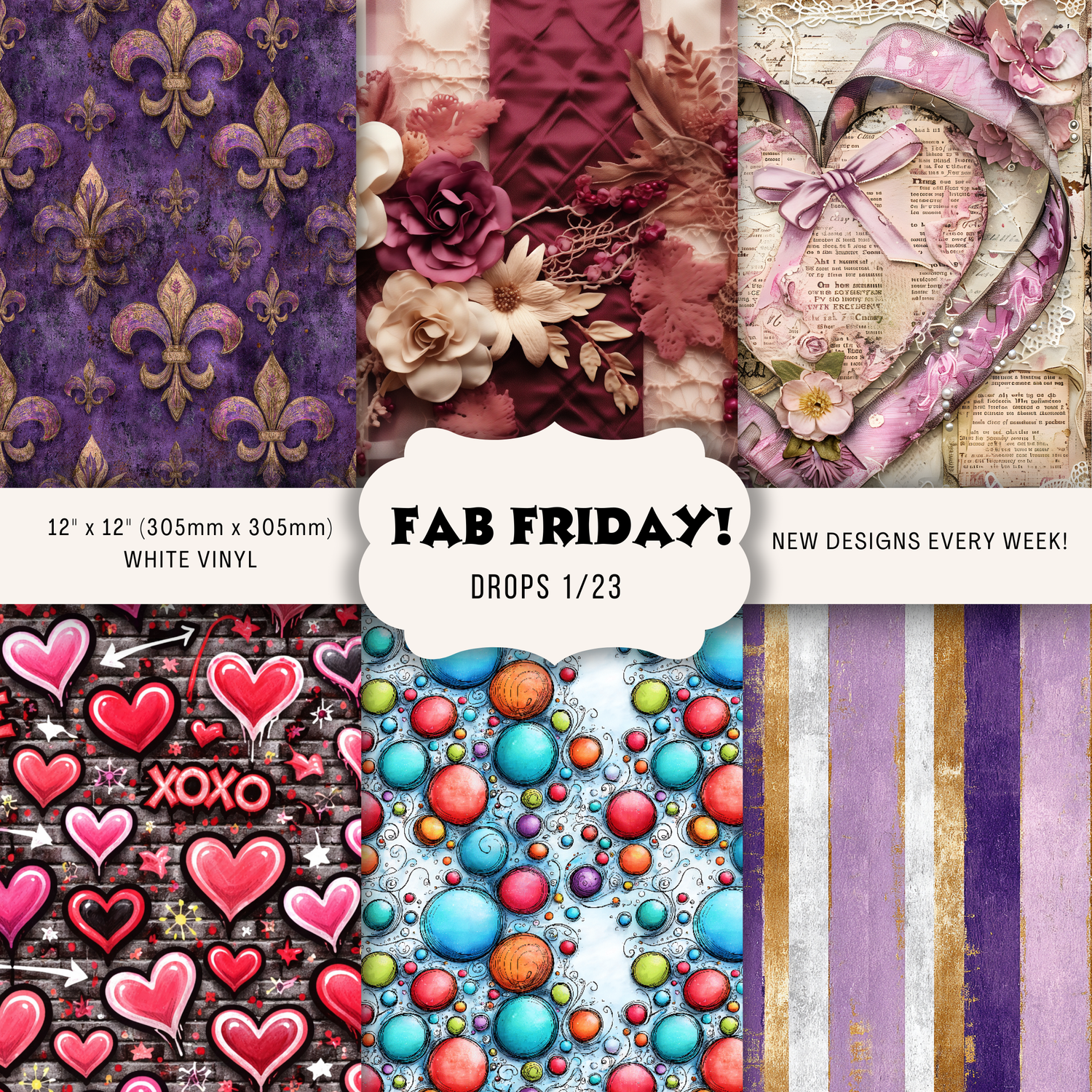 Fridays just got fabulous! Each week, we release a fresh lineup of vinyl sheets that are as unique as your next project. No restocks, no repeats — just new designs ready to inspire your next masterpiece.