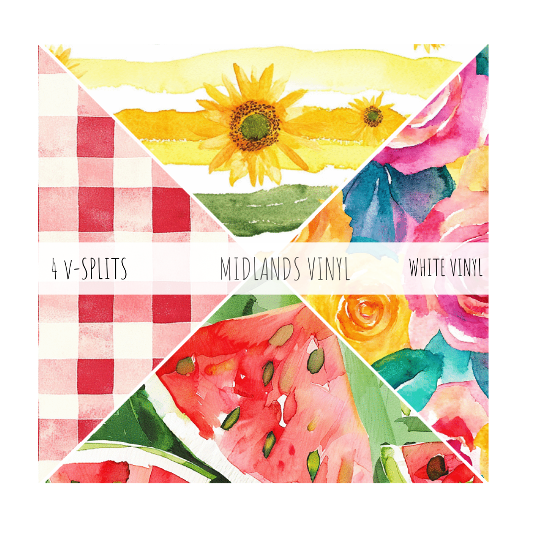 Our innovative 4 Corner Vinyl Sheets at Midlands Vinyl are designed to elevate your crafting experience! With these versatile sheets, you can create not one, but four distinct V-split tumblers from a single sheet, maximizing both your creativity and efficiency.